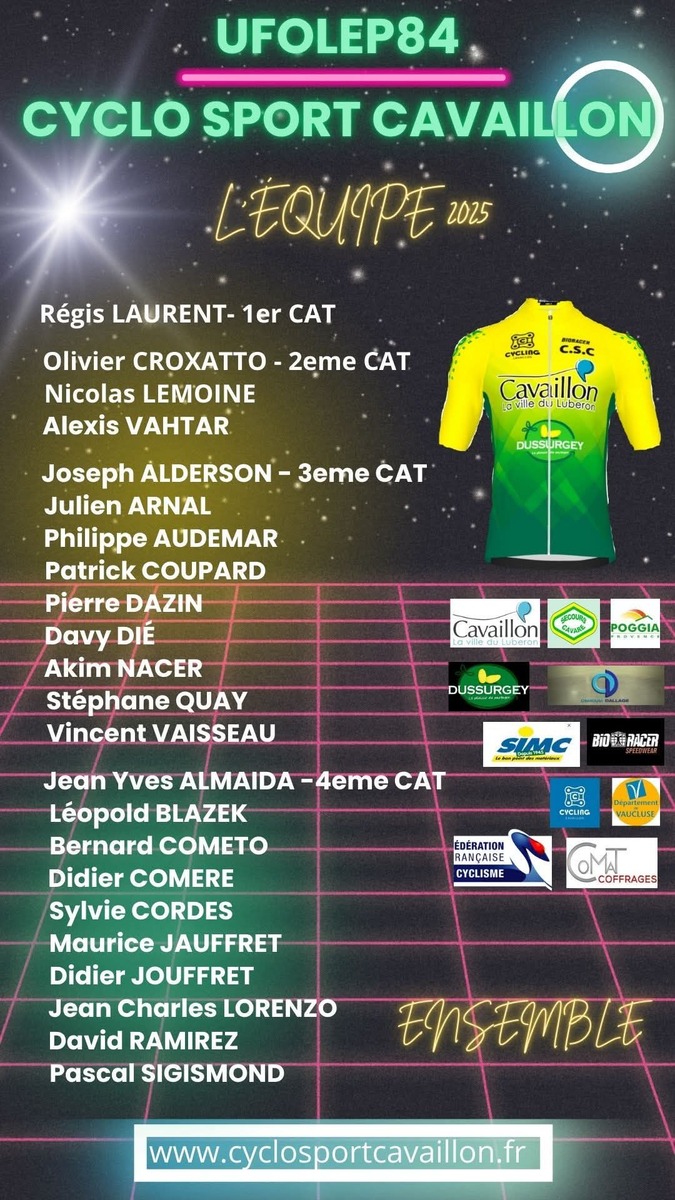 Avec une vingtaine de coureurs, le CS Cavaillon s'efforcera de décrocher de belles victoires et d'atteindre les podiums lors de cette saison 2025, que nous espérons fructueuse.